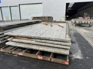 Płyty produkowane są w zakładzie prefabrykacji na podstawie projektu wykonawczego, z uwzględnieniem otworów, zbrojenia oraz wymagań konkretnej inwestycji. W prefabrykacie znajdują się dolne zbrojenie nośne oraz kratownice przestrzenne wspomagające transport, montaż i współpracę z nadbetonem.